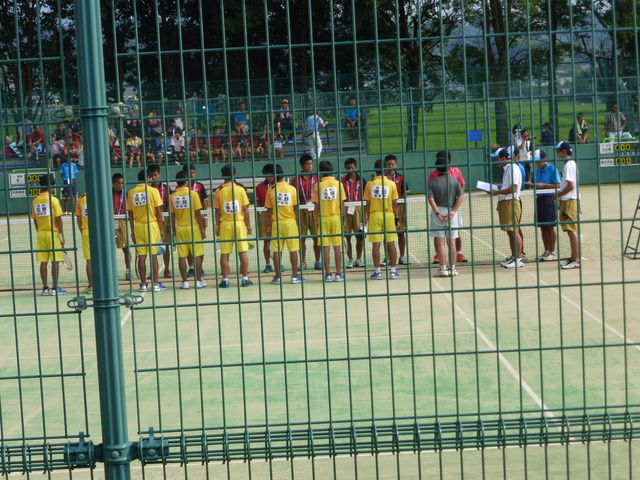 4時過ぎから試合が始まり、孫のペアは第一回戦で四国・高知の明徳義塾と対戦。最終的にフルセットで4:3で敗れはしたが、ジュースの繰り返しで1時間を超え、隣のコートの試合終了時にようやく終わる有様。試合全体も2:1で一回戦敗退となった。悔し涙を飲む。